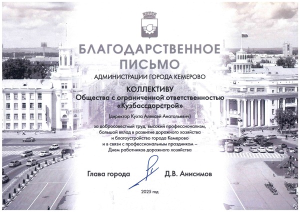 - Почетная грамота ГКУ «Дирекция автомобильных дорог Кузбасса» - 2 чел.