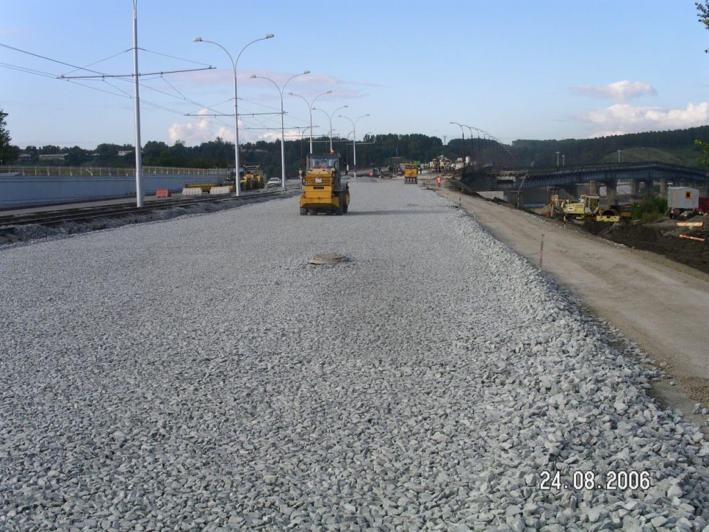 Технологии дорожного строительства:На базе дорожно-строительной компании "Стройдорэкспорт" в различные этапы ее становления были освоены и внедрены следующие технологии дорожного строительства: 2001 год. Технология горячей регенерации асфальтобетонных покрытий методом ремиксирования“Ремиксер” снимает существующее асфальтобетонное покрытие с дефектами, разогревает и перерабатывает скол, и с добавлением нового материала (асфальтобетонной смеси), устраняя сетку трещин и выбоины, укладывается новый асфальт. Одновременно автоматически исправляется продольный и поперечный профиль дороги. Данная технология обеспечивает экономию дорожно-строительных материалов при высоком качестве ремонта. ![]() 2001 год. Ремонт асфальтобетонного покрытия струйно-инъекционным методомПринцип ямочного ремонта заключается в исправлении существующих дефектов дорожного покрытия без предварительного фрезерования и последующего уплотнения дорожно-строительной техникой. Дефекты асфальтобетонного покрытия при помощи мощного компрессора тщательно освобождаются от грязи и пыли, затем осуществляется подгрунтовка поверхности битумной эмульсией и заполнение дефекта покрытия эмульсионно-минеральной смесью. Уплотнение отремонтированного дефекта производится транзитным транспортом после открытия движения. ![]() 2001 год. Профилирование дорожных покрытий фрезами “WIRTGEN-1000C” и “WIRTGEN-2100DC”![]() 2003 год. Ямочный ремонт с применением литой асфальтобетонной смесиВысокая температура литой асфальтобетонной смеси (200-240 0С) позволяет производить ремонтные работы при отрицательных температурах (до -15 0С), что делает возможным производство асфальтобетонных работ в любое время года, обеспечивает надежное сцепление литого асфальтобетона с существующим покрытием. Высокое содержание битумного вяжущего и минерального порошка обеспечивает высокую влагостойкость (остаточная пористость не превышает 0,5 %) и значительно продлевает срок службы асфальтобетона (до 10 лет) даже при интенсивных нагрузках. ![]() 2003 год. Технология устройства дорожных покрытий из щебеночно-мастичного асфальтобетонаСлои, выполненные из щебеночно-мастичного асфальтобетона, обладают высокой работоспособностью на участках дорог с повышенной интенсивностью движения и стойкостью к воздействию природно-климатических факторов. Данная технология наиболее эффективна при ремонте покрытий на мостах и путепроводах. ![]() 2004 год. Устройство щебеночных покрытий и оснований из щебеночно-песчаных смесей оптимального гранулометрического составаИспользование данной технологии позволяет получать щебеночное основание с высокими рабочими характеристиками (ровность, однородность прочностных показателей) и значительно сокращает сроки производства работ, что особенно актуально в условиях Сибири. ![]() 2004 год. Устройство слоя износа из литой эмульсионно-минеральной смеси типа "Сларри Сил"При применении данной технологии срок эксплуатации верхнего слоя асфальтобетонного покрытия, предохранённого от истирания и атмосферного воздействия защитным тонкослойным покрытием, можно увеличить до 3 лет. Это существенно снижает затраты, связанные с содержанием данного объекта, и позволяет практически полностью исключить ремонтные работы на дорогах с интенсивностью до 15000 автомобилей в сутки. Данная техно